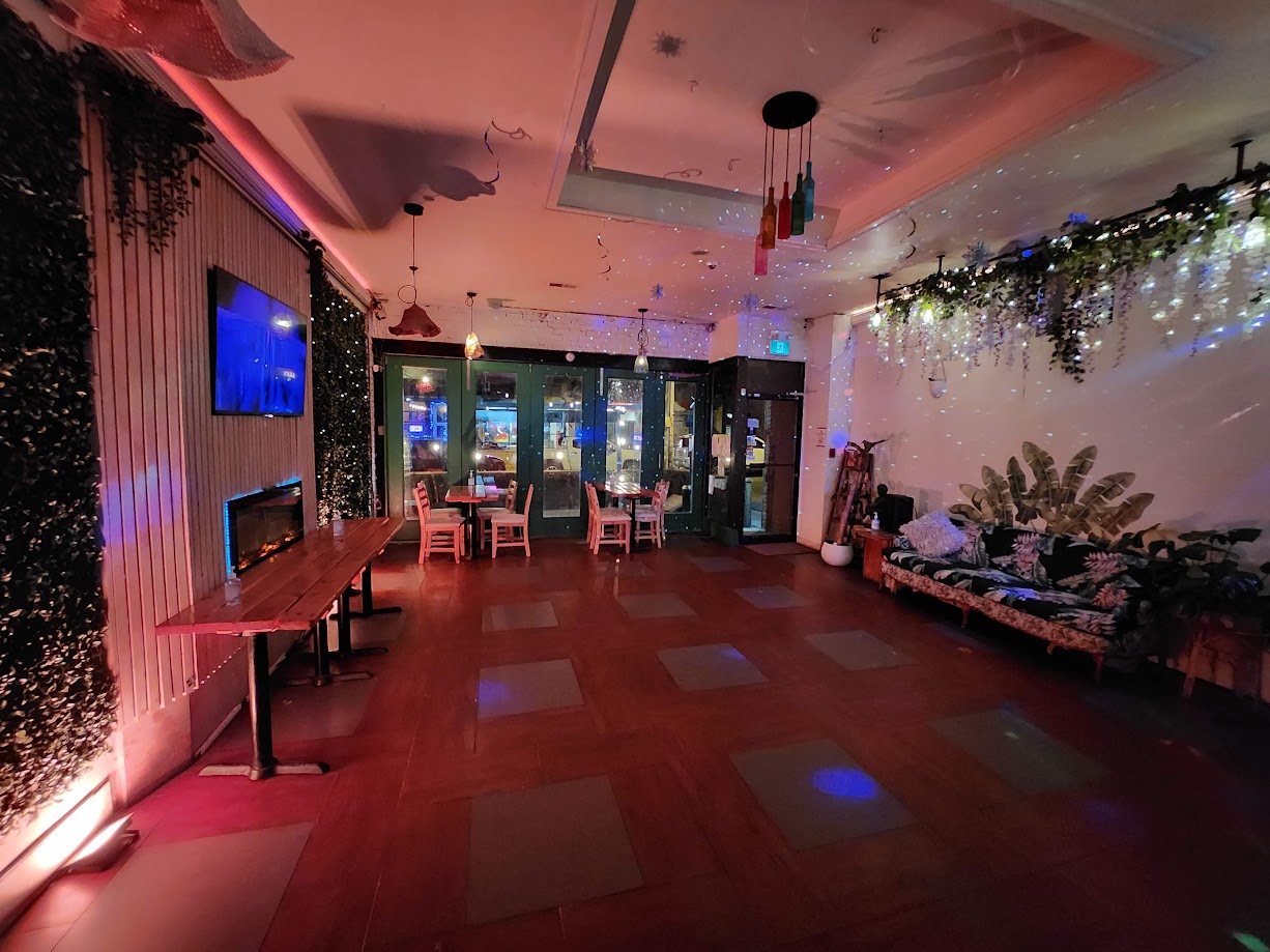 - Features: 55-inch TV, Fireplace, Party Lights, Full Bar Access